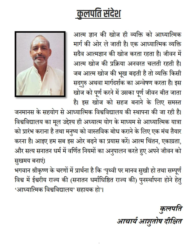 Full details of the university संस्था के बारे में जाने- आध्यात्मिक-विश्वविद्यालय-पुस्तक-समीक्षा 2024-25
